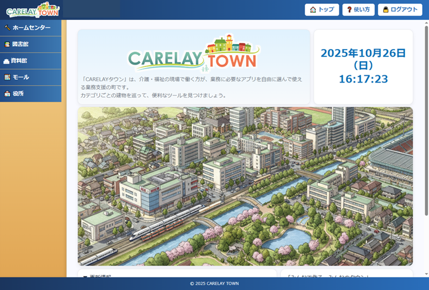 CARELAYタウンは、皆さまの声で街並みが広がり、新しいツールが生まれ、さらに便利な業務環境へと育っていきます。