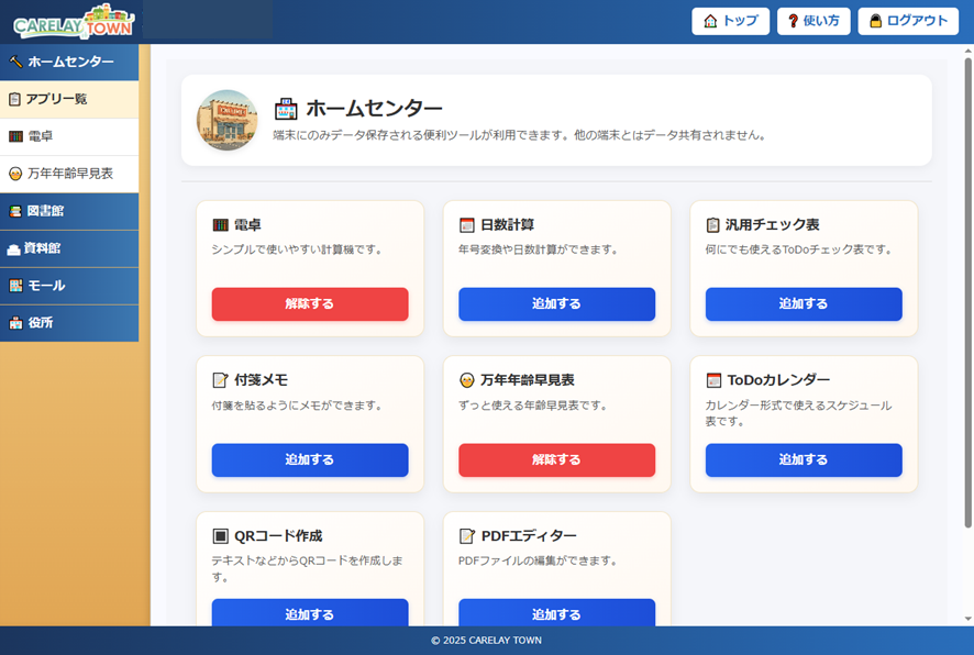 CARELAYの事業所会員様限定サブコンテンツとして、業務支援ツールやレク素材などを自由に使える 『CARELAYタウン』 を実装いたしました。