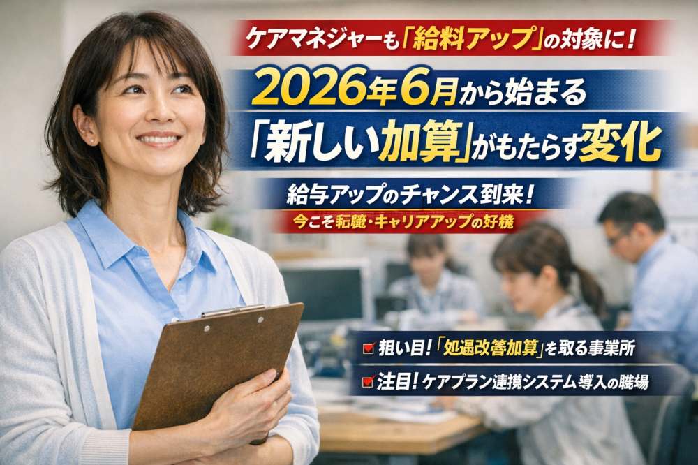 ブログタグ - 処遇改善加算 6件中 1~6件目を表示中 ケアマネジャーも「給料アップ」の対象に!2026年6月から始まる“新しい加算”がもたらす変化 「ケアマネジャーは責任が重いわりに、現場の介護職のような手厚い手当が少ない……」 そんな不満が、2026年6月から解消に向かいます。 本日、国はケアマネジャー(居宅介護支援)にも、新しく「処遇改善加算… CARELAY運営 【1/16速報】居宅介護支援に「処遇改善加算」新設!加算率2.1%獲得のための“2つの選択肢” 本日2026年1月16日、厚生労働省の審議会にて、6月施行の臨時報酬改定の全容が明らかになりました。 経営者にとって最大のニュースは、居宅介護支援および介護予防支援への「介護職員等処遇改善加算」の新設… CARELAY運営 【1/13最新通知】賃上げ加算の条件に「データ連携システム」が追加。アナログ経営が招く“数万円の損失” 2026年1月13日に発出された厚労省通知(vol.1460)は、経営者にとって極めて重要な警告となりました。 2026年6月の臨時改定で実施される「賃上げ」のうち、上乗せ分(月額5,000円〜7,0… CARELAY運営 介護職の「最大1.9万円賃上げ」に落とし穴?自分の手元にいくら残るか、面接で聞くべき“魔法の質問” 2026年からの「月額最大1万9,000円の賃上げ」というニュースを見て、「本当にそんなに上がるの?」と疑問に思っている方も多いはずです。 実際、SNSや現場の調査では、「期待半分、不安半分」というの… CARELAY運営 【2026年最新】異例の「臨時介護報酬改定」が決定!プラス2.03%で現場の賃上げはどう変わる? 介護業界に激震が走っています。通常、3年に一度行われる介護報酬改定ですが、2027年度を待たず、 2026年度(令和8年度)に「臨時改定」が行われることが正式に決定しました。今回の改定率は、介護単体で… CARELAY運営 【2026年1月調査】介護職の6割が「賃上げ」に期待。転職前に知っておきたい“本当に給料が上がる職場”の条件 2026年が幕を開け、介護現場では「国の賃上げ策」への関心がかつてないほど高まっています。 最新の意識調査(2026年1月発表)によると、介護職員の約6割が今回の臨時改定による賃上げに「期待している」… CARELAY運営 1