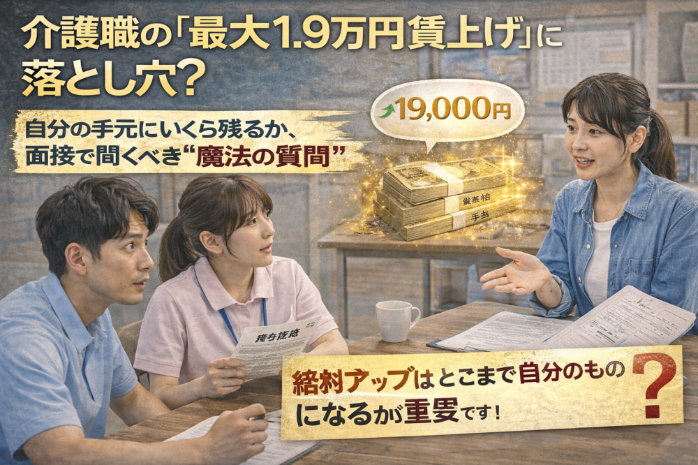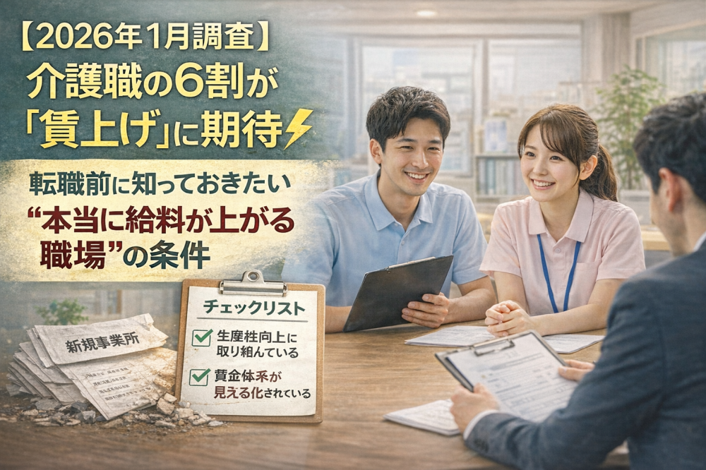 ブログタグ - 賃上げ 5件中 1~5件目を表示中 病院・クリニックの「初診料」が上がる?医療・介護のダブル改定が、あなたの給料に与える影響 今週、医療業界でも大きなニュースがありました。 2026年度の「診療報酬改定」の骨子案が了承され、初診料、再診料、そして入院基本料の引き上げが正式に決まったのです。「病院の料金が上がるなら、患者さんは… CARELAY運営 【1/13最新通知】賃上げ加算の条件に「データ連携システム」が追加。アナログ経営が招く“数万円の損失” 2026年1月13日に発出された厚労省通知(vol.1460)は、経営者にとって極めて重要な警告となりました。 2026年6月の臨時改定で実施される「賃上げ」のうち、上乗せ分(月額5,000円〜7,0… CARELAY運営 介護職の「最大1.9万円賃上げ」に落とし穴?自分の手元にいくら残るか、面接で聞くべき“魔法の質問” 2026年からの「月額最大1万9,000円の賃上げ」というニュースを見て、「本当にそんなに上がるの?」と疑問に思っている方も多いはずです。 実際、SNSや現場の調査では、「期待半分、不安半分」というの… CARELAY運営 障害福祉サービスも2026年6月に臨時改定へ。「新規事業所の報酬引き下げ」という異例措置の衝撃 介護報酬の臨時改定と並行し、障害福祉サービス等報酬についても2026年6月に「臨時改定」が実施されることが正式に決定しました。改定率はプラス1.84%。介護と同様、他産業に負けない「月額1万円程度」の… CARELAY運営 【2026年1月調査】介護職の6割が「賃上げ」に期待。転職前に知っておきたい“本当に給料が上がる職場”の条件 2026年が幕を開け、介護現場では「国の賃上げ策」への関心がかつてないほど高まっています。 最新の意識調査(2026年1月発表)によると、介護職員の約6割が今回の臨時改定による賃上げに「期待している」… CARELAY運営 1